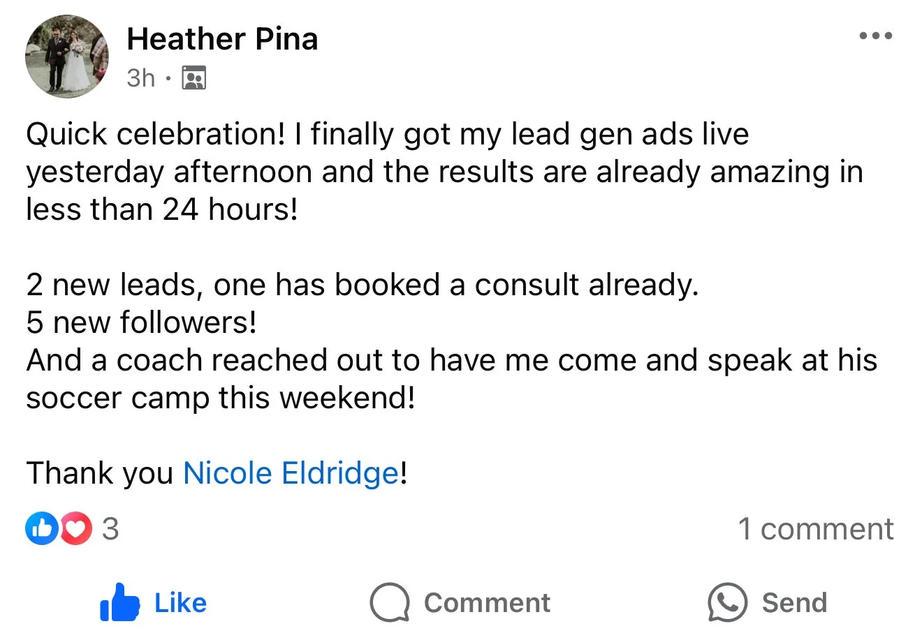 "Nicole's step by step process of how to launch ads was a game changer for me"